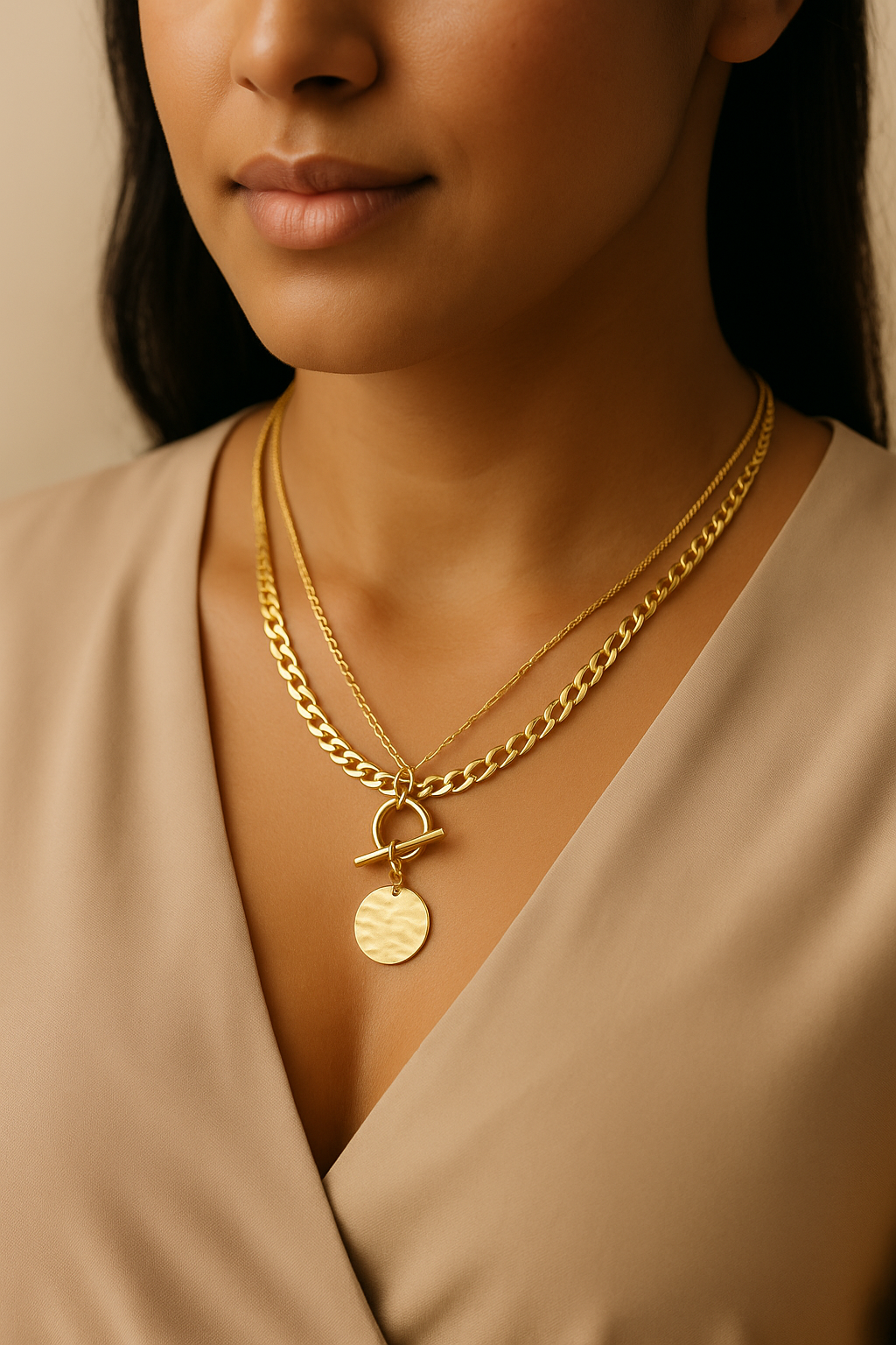 صُنعت هذه المجموعة الرائعة وحب لتروي حكاية من الأنوثة والأصالة. ثلاث سلاسل ذهبية فاخرة ، كل واحدة منها تحمل لمسة مختلفة من الجمال: انسيابية، فخامة، وتفاصيل تعبر عن القوة والرقة في آن واحد. إنها مجرد إكسسوارات، لمسة من الفنّ تليق بكِ .